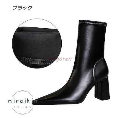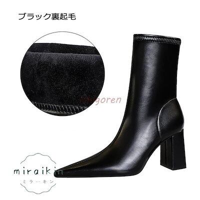 【3日以内出荷】ブーツ レディース ショートブーツ 履きやすい 痛くない 8cmヒール 22-26.5cm 太めヒール 裏起毛タイプあり 黒 ブラック 歩きやすい 通勤用 仕事 美脚パンプス