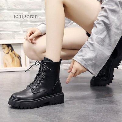 【3日以内出荷】編み上げブーツ ブーツ 厚底 厚底ブーツ オールシーズン ハイカット おしゃれ レディース ショートブーツ レースアップ きれいめ カジュアル 靴