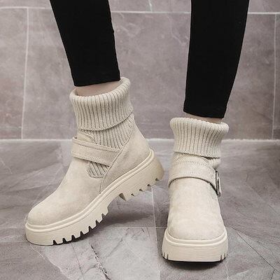 【3日以内出荷】ソックス風 ショートブーツ レディース 2wayニットブーツ バックルベルト 厚底ブーツ 歩きやすい ハイカット ブーツ おしゃれ