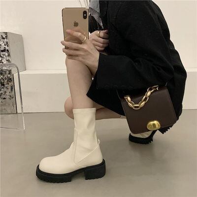 【3日以内出荷】ブーツ ハイグレード 厚底 高さを増やす ショートブーツ マーチンブーツ レディース 2024 秋冬新作 ストレッチ 韓国ファッション