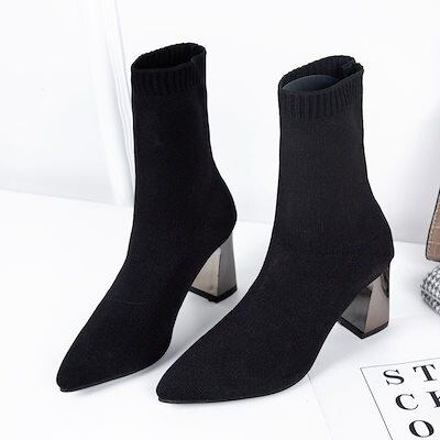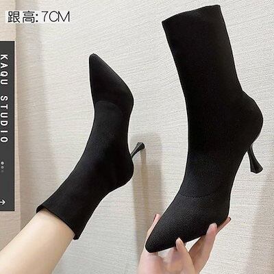 ブーツ スキニーブーツ レディース ニット ストレッチブーツ ソックスブーツ ミッドカーフ ハイヒール チャンキーヒール ショートブーツ 韓国ファッション
