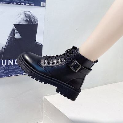 ブーツ ファッション カジュアル マフィン 厚底 レース マーチンブーツ レディース ブラック ショットブーツ 韓国ファッション