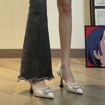 メディヒール 尖ったハイヒール 細ヒールのハイヒール ドリルの靴 フランス 結婚靴 白 シングルシューズレディー