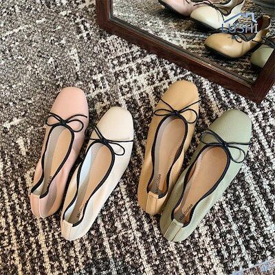 人気商品超目玉 パンプス レディース フラットシューズ バレエシューズ ぺたんこ 蝶結び ローヒール スクエアトゥ 疲れない 柔らか 靴 美脚 通勤 高級感 おしゃれ