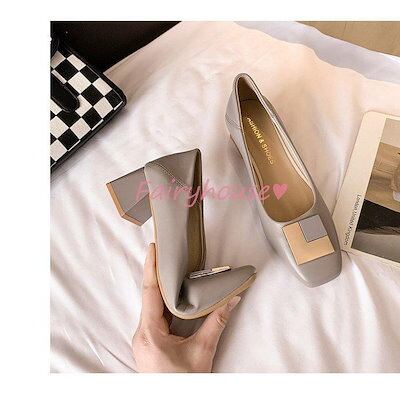 パンプス スクエアトゥ シューズ レディース 春夏 太めヒールパンプス ハイヒール 美脚 履きやすい 痛くない 靴 オフィス 通勤通学 オシャレ40代50代30代