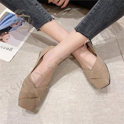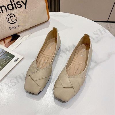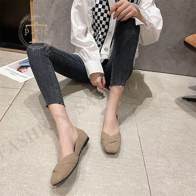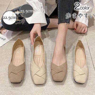 パンプス レディース フラットシューズ ぺたんこ ローヒール 柔らか クロス スクエアトゥ コンフォート 靴 美脚 通勤 きれいめ 高級感 おしゃれ