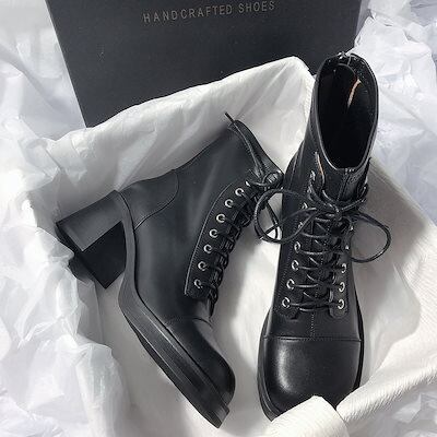 【2枚購入で 2oo円OFF! 】新品登場 マーティンブーツ ブーツ ミドルヒール 太ヒール スクエア靴 ーシューズ ヒール レディース 通勤通学 かわいい 美脚厚底 大人気 ショートブーツ 福袋
