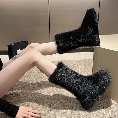 韓国ファッション長靴新型サイドジッパーミドルブーツ秋冬 新作レディースおくがい無地ブーツ足 ロングブーツ