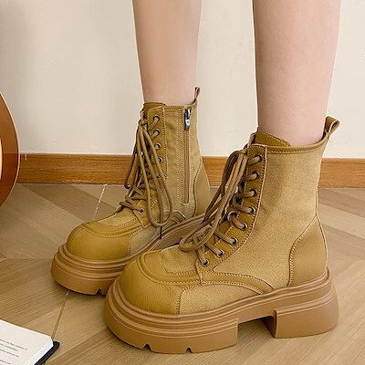 韓国ファッション レディースショートブーツ厚底マーディンブーツ 美脚チャンキーブーツ