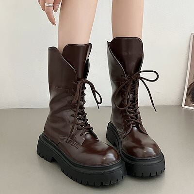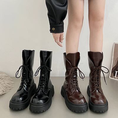 韓国ファッション レディースショートブーツ レース厚底マーチンブーツ女性夏モデル2024新しい百レトロバイカーショートブーツと厚い