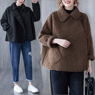 新しい中国風冬レトロ国民風バックルコートゆったり大きいサイズレディース模造ラムウール暖かいジャケットトップ