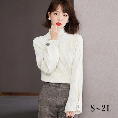 ニット ゆったりニット セーター レディース フレア袖 ハイネック トップス リブニット 長袖 大きめ 体型カバー オーバーサイズ 無地 S M L 2L 3L