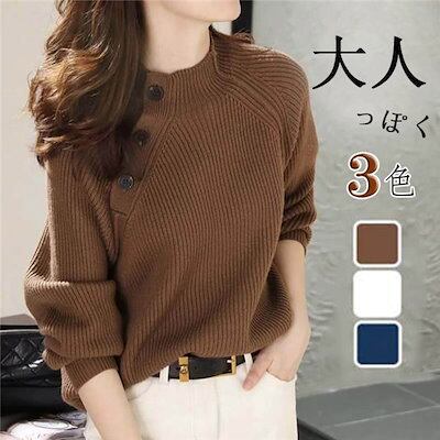 肌触りもデザインもこだわったオリジナルの袖ボタンニット ニット やわらか スタンドネック 大人 シンプル きれいめ 秋 冬 20代 30代 40代 レディース きれいめ おしゃれ かわいい 着痩せ 秋