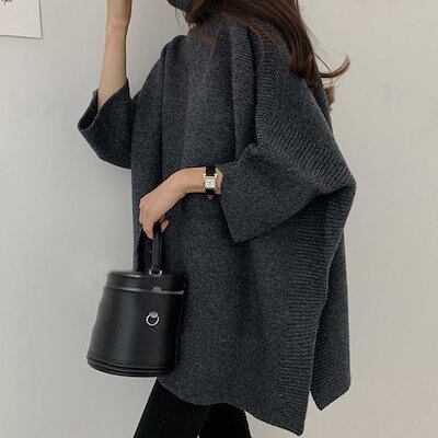 スウェット カシミヤタッチベーシックニット 冬でもブラウス パーカー ラウンドネックニット タートルネックニット長袖 2022 ハイネックスウェットニットワンピース ゆったり セーター レディース