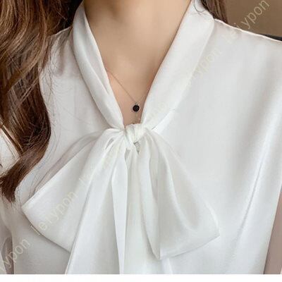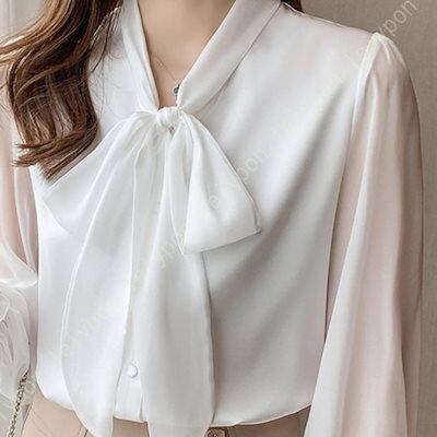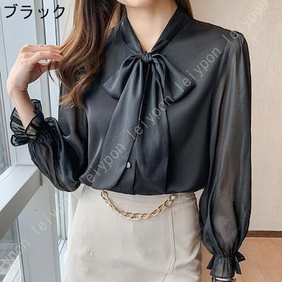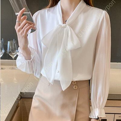 シフォン リボン付き 九分袖 ブラウス リボンタイ ボウタイ レディース 白 フォーマル スーツ 演奏会 入学式 ママ スーツ インナー ブラウス おしゃれ 可愛