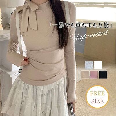 カットソー レディース Tシャツ ボウタイ 首元リボン トップス ハイネック 薄手 オフィス プルオーバー インナー ストレッチ スーツインナー 春 秋 夏 冬 かわいい フォーマル カジュアル 高品