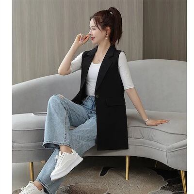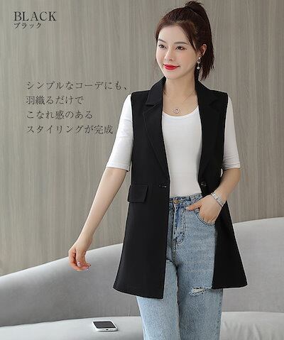 ジレ レディース フォーマル 春夏 前開き ベスト ロングベスト チュニック丈 テーラード テーラードベスト スーツベスト 羽織り ノースリーブ 大人 無地 きれいめ ビジネス 通勤 お洒落 デイリ