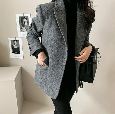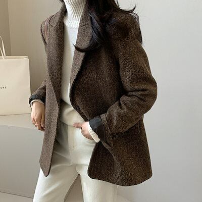 スーツジャケット レディース 秋 冬 ヘリンボーン スーツ コート テーラードジャケット ジャケット ラシャ ロングジャケット 羽織り アウター 長袖 防寒コート 上着 羽織 フォーマル OL風 オフ
