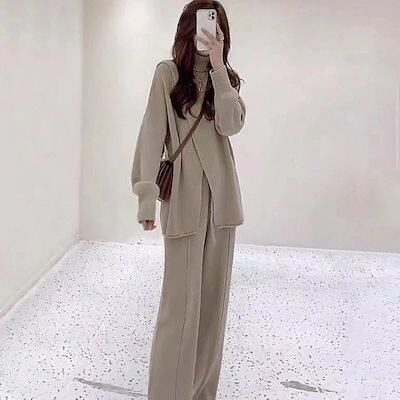 秋冬 新作 おしゃれ 気質 レディースセットアップ ニット アウター 二点セット 上下セット セーター ワイドパンツ セットアップ