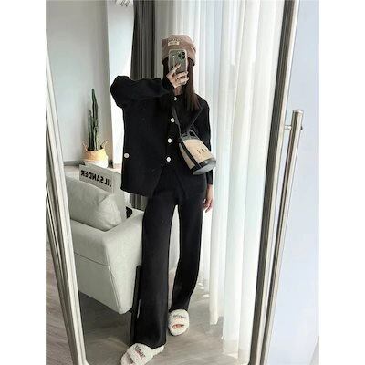 秋冬 新作 おしゃれ 気質 ニット アウター 二点セット レディースセットアップ 上下セット セーター ワイドパンツ セットアップ 通勤 シンプル 福袋