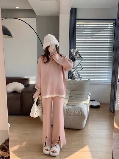 しゃれ 気質 上下レディースセットアップ ニット アウター 二点セット セーター ワイドパンツ セットアップ 通勤 長袖セーター 福袋