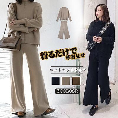 新作 おしゃれ カジュアル 気質 レディースセットアップ セーター ワイドパンツ カジュアルパンツ 二点セット シンプル 百掛け セット