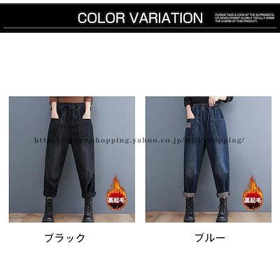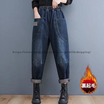 デニムパンツ レディース 裏起毛 暖かい ワイドパンツ おしゃれ ゆったり 太め 大 秋冬 ストレート ボトムス ジーンズ ジーパン