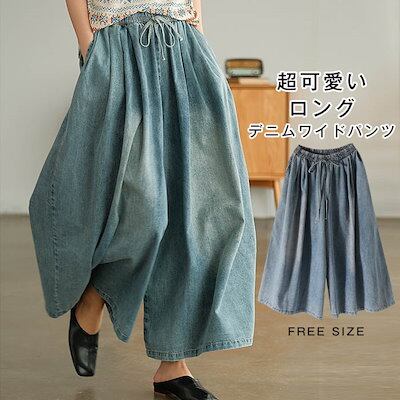 大人 カジュアルに デニムパンツ パンツ デニムワイドパンツ 大きいサイズ レディース パンツ コットン 大人 の 楽ちん 美ゆるゆったり デニム ワイドパンツ オリジナル デニムパンツ ゆったり カ