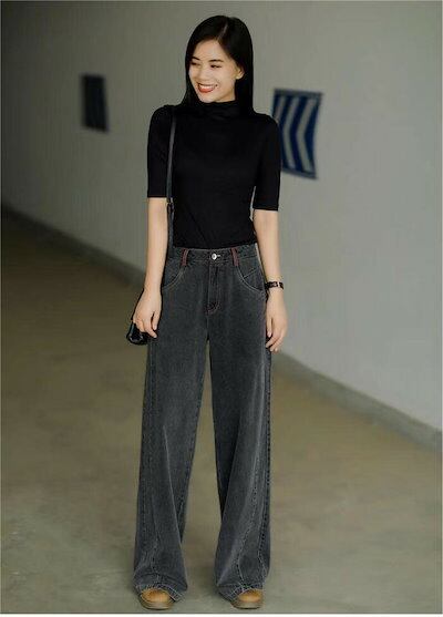 デニムワイドパンツ デニムパンツ レディース 秋冬 パンツ ジーパン 大人カジュアル ボトムス ワイドルーズ ロング丈 長ズボン デニムパンツ ジーンズ ハイウエスト 大きいサイズ ゆったり 体型カ