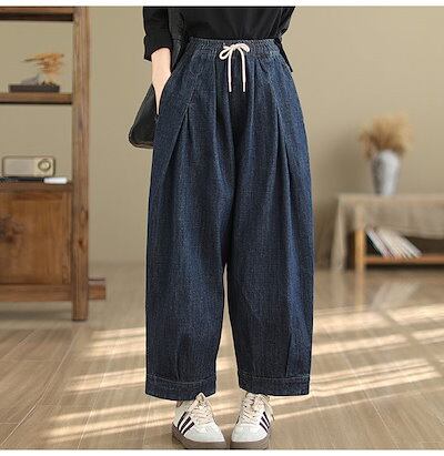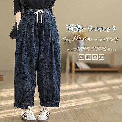 デニム ワイドパンツ レディース バルーンパンツ デニム クロップド コクーンパンツ デニム ボトムス パンツ ジーンズ 大人カジュアル 春夏 ナチュラル 森ガール ズボン ウエストゴム 大きいサイ