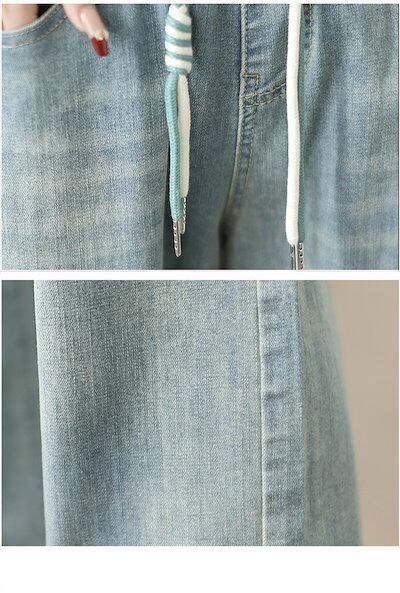 デニムパンツ 夏 レディース デニムワイドパンツ 大きいサイズ ゆったり ジーンズ ストレートワイドパンツ 柔らか ボトムス ジーパン 美脚 春夏秋 カジュアル ウエストゴム 体型カバー 着回し 大人