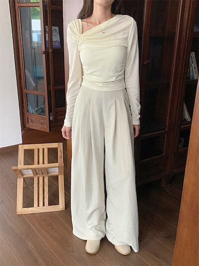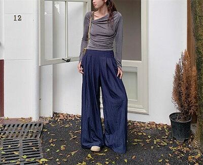 ワイドパンツ レディース タックワイドパンツ 春秋 パンツ ロングパンツ ボトムス 綿混 通勤 リラックス ウエストゴム バギーパンツ イージーパンツ ゆったり カジュアル 大人 上品 オフィス 事