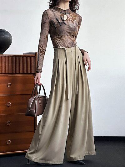 タックワイドパンツ レディース 春秋 パンツ ロングパンツ ガウチョパンツ 通勤 ボトムス 大人 リラックス オフィス フォーマル バギーパンツ イージーパンツ ゆったり カジュアル 体型カバー 上品