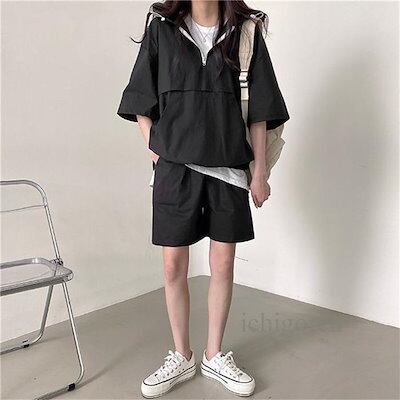セットアップ レディース 夏服 半袖パーカー ショートパンツ 上下セット ジャージ フード付き tシャツ ハーフパンツ おしゃれ 無地 ゆったり
