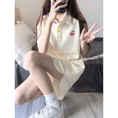 コットンポロシャツファッションスポーツウェアスーツレディースサマーカレッジスタイルカジュアルルーズ半袖ショートパンツ2点セット