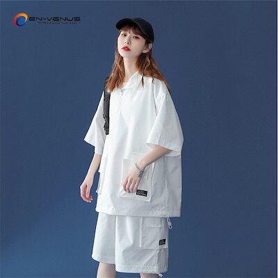 上下セット セットアップ 半袖パーカー ハーフパンツ ショートパンツ レディース トップス 吸汗速乾 涼しい ゆったり スポーツ 運動 部屋着 大きいサイズ