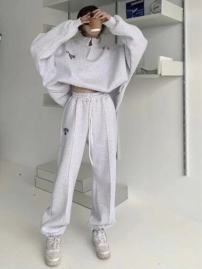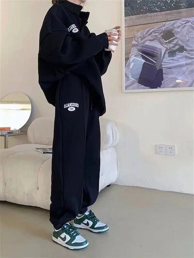2023ウェットアップ上下二点長袖立ち襟アウター無地スウェットパンツ韓国ファッションレディーストレーニングウェア レディーススポーツウェディース
