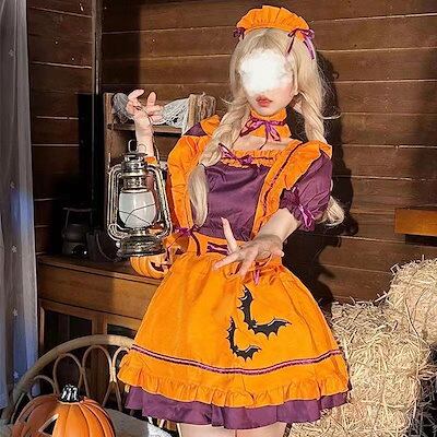人気な レディース ハロウインコスプレ ロリータ ヴィンテージ ロリータ パンプキンメイドコスプレ衣装 大人 学園祭 文化祭 ワンピース コウモリメイドスーツ クリスマスコスプレ 制服