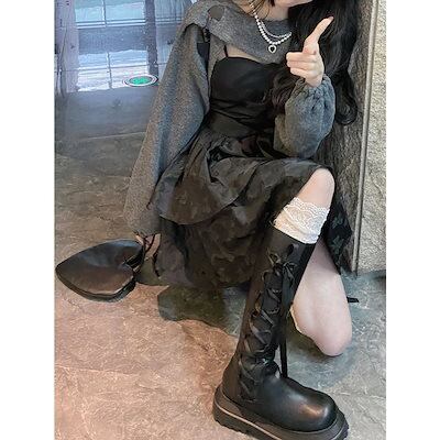 人気な レディース ハロウインコスプレ ロリータ ヴィンテージ パーティー キャミソールワンピース+シャツカバー2点セットダーク系秋デザイン黒ギャルスーツ 制服