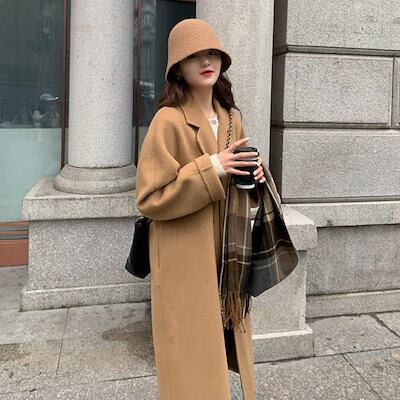 チェスターコート 冬アウター レディース秋冬新作模造ウールコート ダブルブレスト 韓国風 ゆったり ミドル丈 上品で高級感のある両面ウールコート 韓国ファッション