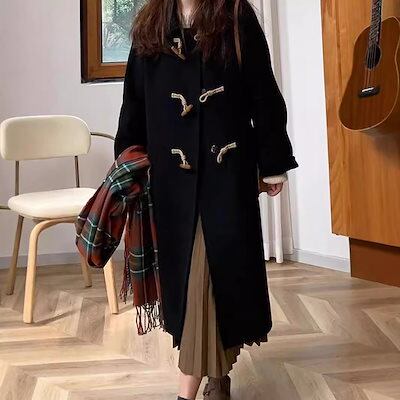 チェスターコート 冬アウター 無地ホーンボタンウールコートレディース2024秋冬新作厚みのあるリトルカレッジスタイルジャケット 韓国ファッション
