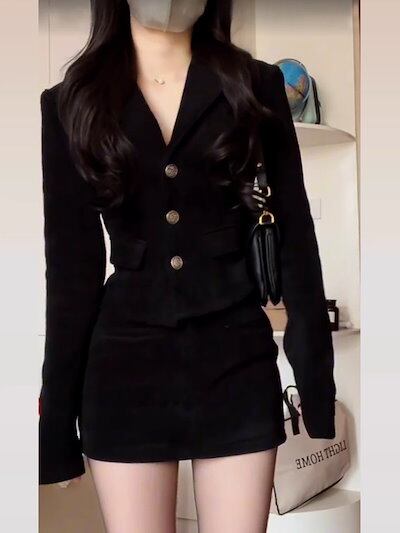 ブラック スーツワンピース2024新作秋服 長袖 レディース ファッション 新品追加セットアップスカート