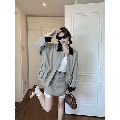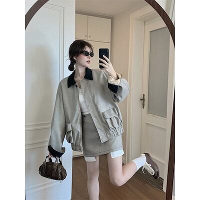 通勤スーツ 2024早秋 デザイン感 レトロ ゆったり ジャケット +スカート セットアップ 2点セット レディースファッション