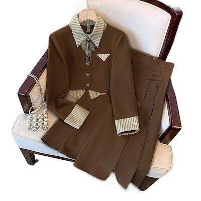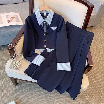 大人気韓国 2点セットニットセットアップ 秋新作 セットアップ レディース 春秋 新しいスタイル プリーツ スカート カレッジスタイル スーツ