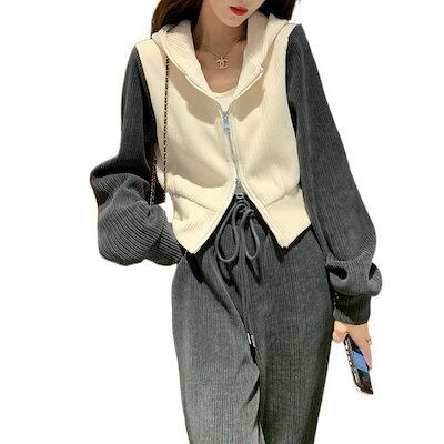 セットアップ カジュアル スポーツ スーツ レディース 秋 新作 ファッション 薄手 フード付き 2セット
