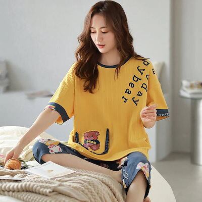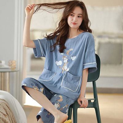 2024 パジャマ レディース 上下セット 半袖 パジャマ 学生アウターモダール 寝巻き インナーウェア 二点セットアイスシル薄手半袖のスーツ セットアップ ルームウェア 部屋着 寝間着 セット