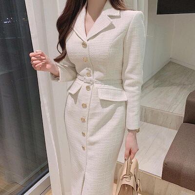 韓国chicフレンチ ドレス ワンピース 上品 通勤 OL レディース ファッション スーツ ワンピース 体型カバー