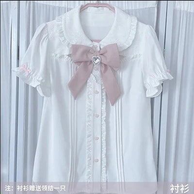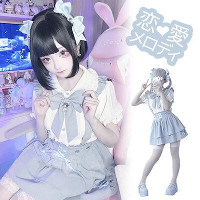 ロリータ 人気新作 ワンピース ドレス 地雷系 水色 量産型 レディース半袖シャツスカートスーツ 脚魅せミニスカート 韓国ファッション