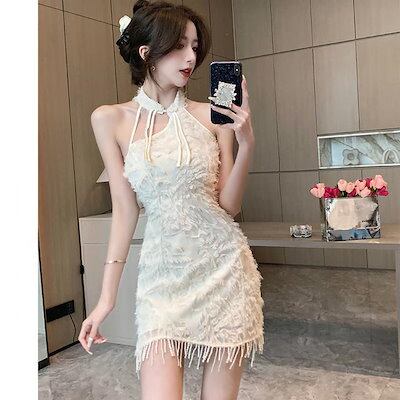 2024夏新作 ワンピース ドレス スーツスカートレディース フリンジ改良チャイナドレスノースリーブヒップ短いスカート