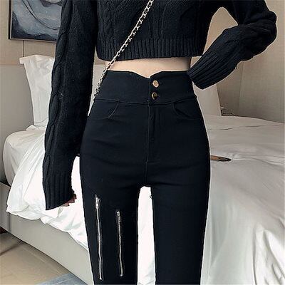【3日以内出荷】脚長効果!スキニーデニムパンツ 2024春秋ハイウエストゴム薄ボトムス外ズボン レディース 韓国ファッション